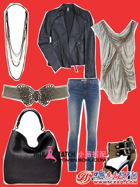 搭配建议:大翻领短款机车夹克配仔裤,简约出街,夹克内搭这周T恤彰显个性。整体最出彩的地方就是长款的项链点缀。