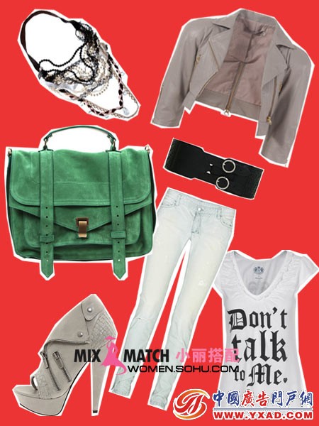 搭配建议:明媚三月出街当然要够“抢眼”,这里说的抢眼绝不是花枝招展,低调的灰色巧妙传出惊艳效果。中袖短款夹克配对浅色仔裤,清爽养眼。