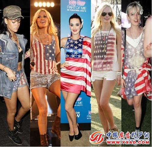 美国国庆刚过两天,当亚美利坚人民欢庆为国家庆生时,我们也为妳捕捉欧美女星们把星条旗穿在身上的时髦样貌。许多美国歌手如Katy Perry、Ke经常喜欢在表演时,套上国旗装,表现爱国心之外,漂亮的红白蓝色彩,加上星星和条纹的设计,俨然成为最抢眼的舞台服装。 美国星条旗除了代表国家,鲜豔色彩加上鲜明图誊,也是很好的时髦单品,因此也有许多欧美女星,喜欢穿上印有国旗标志的私服,如Kate Bosworth在音乐祭穿上清爽的彷旧国旗上衣、Agyness Deyn宽鬆星条旗洋装、Rihanna的国旗牛仔短裤等等,展现不同潮流风貌。现在就让我们跟着潮星一起,感受美国国庆的热闹气息吧!