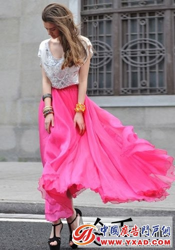 一袭飘逸的玫红色长裙,也是你的不错选择啦,玫红色显得皮肤非常的白皙哦,而且十分的抢眼呢,搭配一件白色的上衣,就已经很好看啦!
