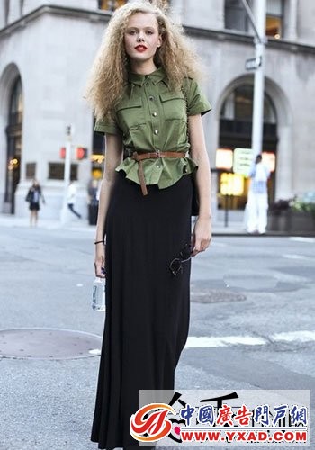 军绿色的上衣,让你看起来十分的干练知性,搭配一条简约的黑色长裙,小粗腿神马的统统滚粗啦!同时瞬间帮你拉长了身体的线条哦,让你高挑且魅力无穷哦!