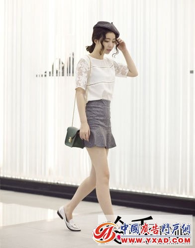 小编点评:性感的灰色包臀裙,裙子高腰的款式,修身的设计,将你完美的臀部线条展现得淋漓尽致,裙子的荷叶边下摆,也是设计上的一大特色。搭配白色的蕾丝上衣,散发出性感的女性气质。