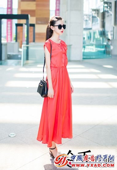艳丽的红色连衣裙,裙子领口处的蝴蝶结绑带修饰,时尚潮气中又带有可爱的韵味儿。裙子的束腰设计,又可以展现出你完美的身材比例。