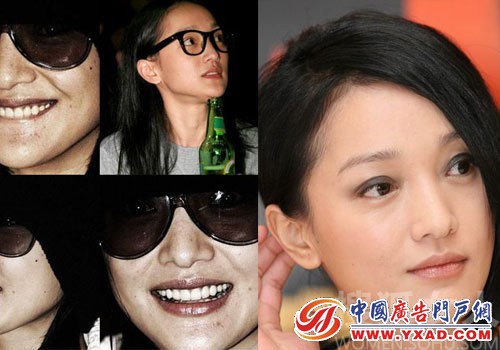 国际章天生的小脸尖下巴是值得肯定的,但是她并不光亮的肤色全靠粉底的帮忙。