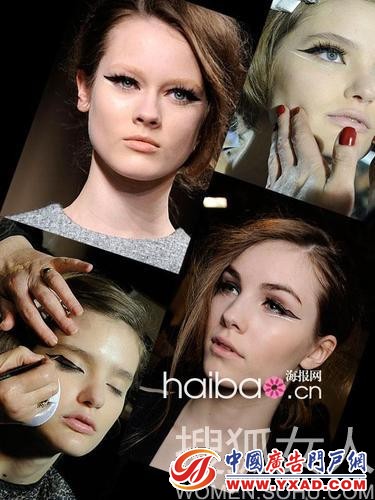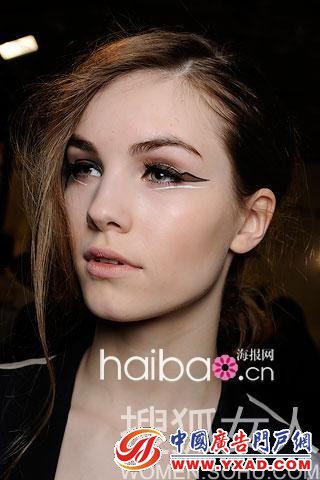 上扬型眼线已经不新鲜,在詹巴迪斯塔·瓦利(Giambattista Valli) 2010秋冬秀场上,成几何形状的上扬型眼线更凸显出华丽大眼的魅力!