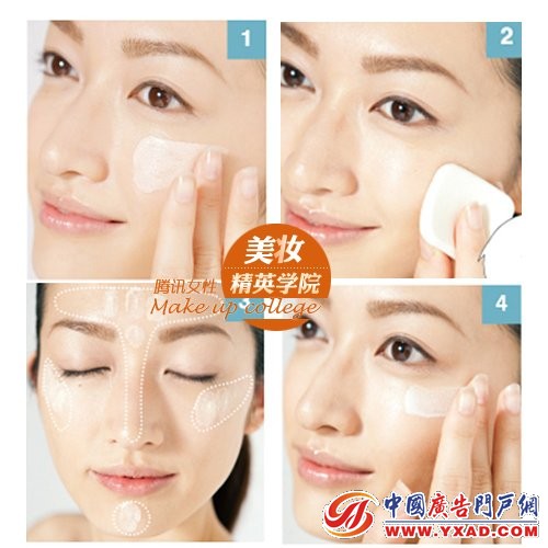 1.取适量粉底霜,薄薄延伸涂抹脸部全体,让妆容难以损坏。脸颊等处多重涂抹,遮盖暗淡和防止紫外线。