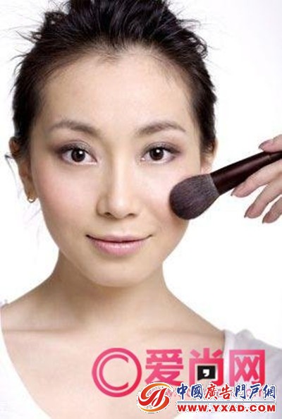 扑上蜜粉更像自然,沾少许蜜粉,大片的按在腮红处,有自然的红晕。清楚淡粉唇,好气色不造作。