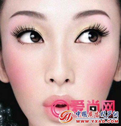 化亮片眼线液,沿睫毛根部化上亮片眼线更闪。清晰的腮红,亲切飙涨。