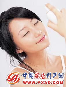 化妆完毕,从离开面部一手臂的距离往脸上喷上保湿水,妆容可以更加持久。