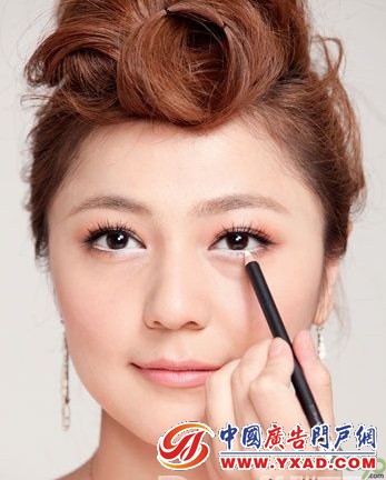 为了让眼睛看起来更大,使用白色的眼线笔描画下眼睑内侧,同样是由眼头到眼尾顺畅的画出一条线,瞬间眼睛就增大了一倍,这样是不是感觉眨眼之间闪烁出点点星光呢。