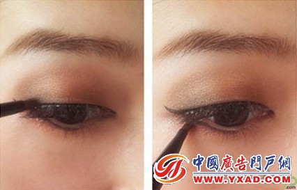 STEP 4:然后就是眼线了,非常简单,为了使眼线更自然,我们可以选用黑色眼线,从眼头画向眼尾。在眼尾我们可以选择拉长眼线来增加眼睛的长度,还有不能忘了下眼睑哦!下眼睑可以从中间部位开始描画,这样不用显得突兀,非常适合成熟女的眼部妆容哦!