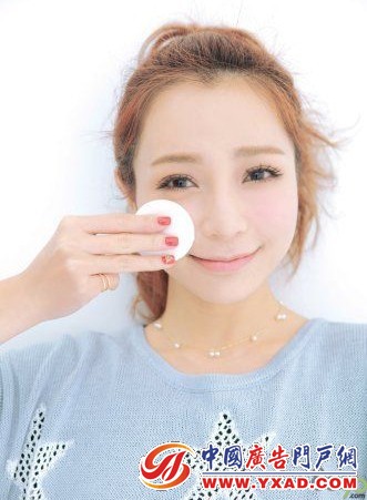 3、最后使用化妆棉蘸取适量的卸妆水,依次按照由额头到下巴的顺序进行擦拭,完成最后的清洁。