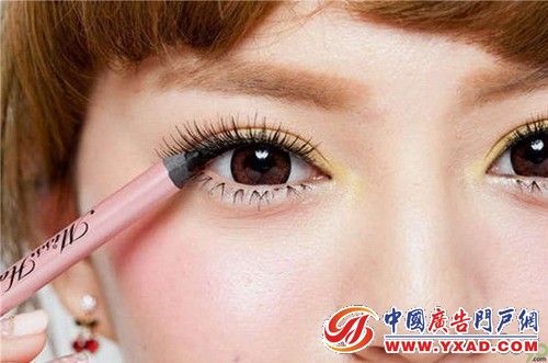 眼妆是清新的色彩,因此在眼线的部份就不要画的太粗而让妆感变浓艳。建议只要将眼线画在上眼睑的位置,还能让彩色眼妆更明显。