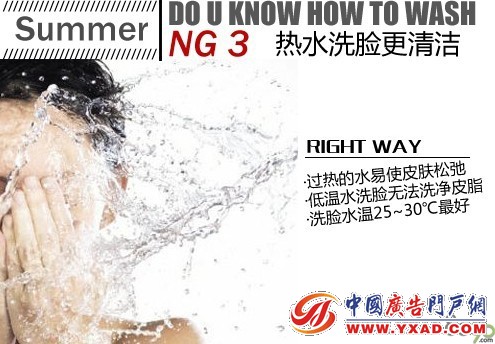 正解做法:正确的方法是用35℃的温水洁面,像夏天室外泳池的舒服温度就对了,然后再用冷水冲洗。
