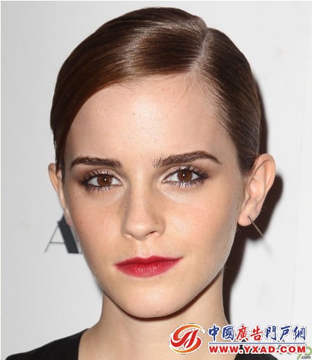 艾玛·沃特森精致的眉眼显出成熟韵味。但烈焰红唇的略微花妆却给整体打了个小小的折扣。嘴唇本身也分泌油脂,在上唇妆前可选择用粉饼或者散粉在唇周定妆。然后使用浅色唇线笔勾勒出唇形轮廓,为了避免唇彩花掉,也可用棉签蘸上唇彩均匀的涂在双唇上,看起来自然又透明。