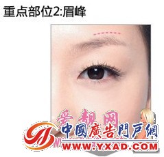 眉峰:眉毛最高的位置,眉峰一般在眉头至眉梢的外1/3处。