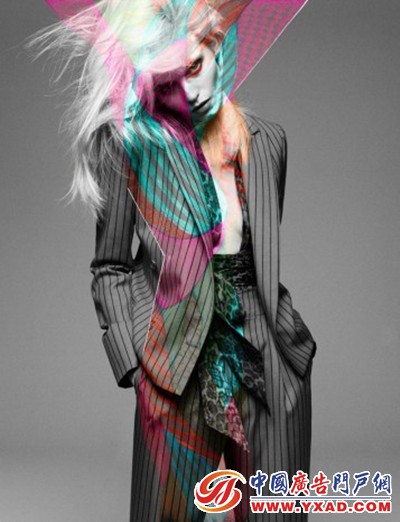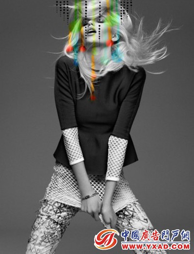 随性的黑白照,Abbey Lee飘扬的金发,加上不均一格的后期处理:色彩拼接,手绘纹理,几何剪裁,造就了这组简约却独具风格的后现代大片。