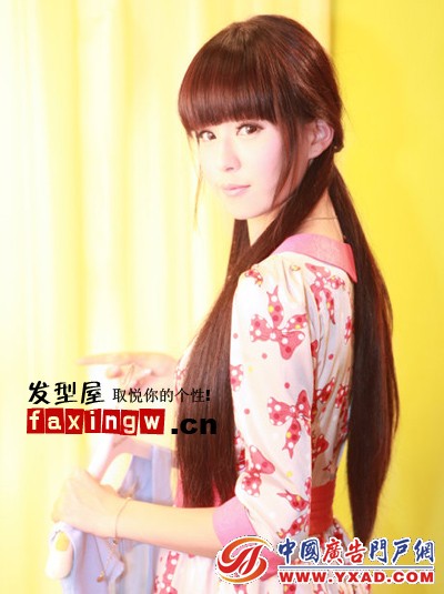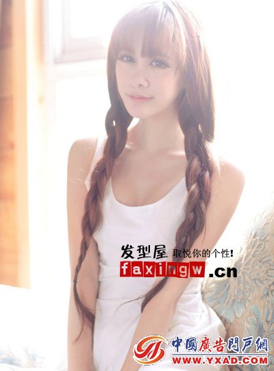 长发随意的扎双辫子,纯真可爱,薄碎的刘海搭配更可爱萝莉,奶茶系的染发更是萌萌惹人爱!