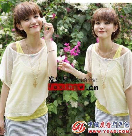高束的无刘海发型,简单清爽,动感活泼,搭配露肩的短T恤又凸显了一丝小性感的味道呢!