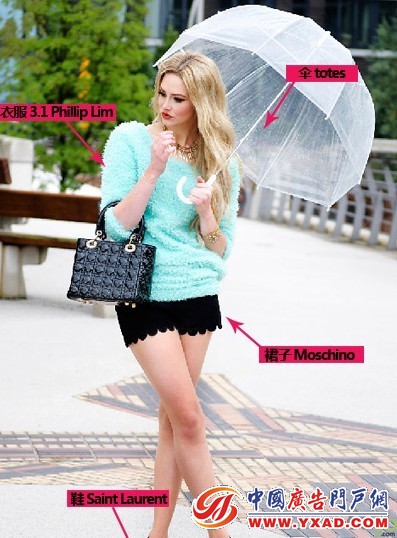导读:近日来阴雨连绵,出门时一把伞是不是让你连造型都觉得很狼狈?这样想你就大错特错啦!要知道时尚达人是什么道具都不会放过的,所以,无论太阳伞还是雨伞,打起来吧,让这个阴雨天气多一番别样风情。