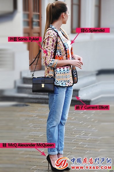 高跟鞋的女性气质在这身装扮中起到举足轻重的作用,中和了西装带来的职业感,女人味浓郁。