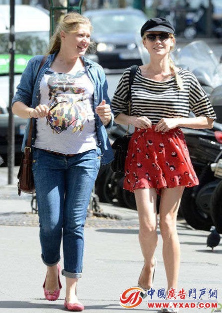 点评:横条纹只是瘦MM的专利,微胖女生都不能碰。有点随意往下的一字领,让这件条纹T恤的横向扩张感变得稍微收敛了一点。