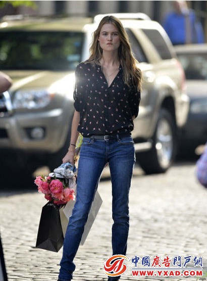 超模贝哈蒂·普林斯身穿黑色印花衬衫,轻薄的材质透露出若隐若现的性感,简单的牛仔裤搭配露趾短靴帅气逼人,倔强的表情为我们塑造出一位独立有个性的现代女性。