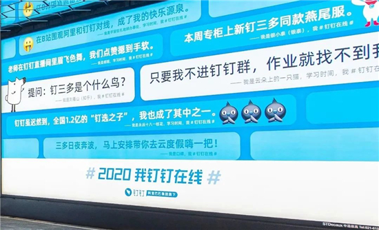 去年3月,钉钉以“2020,我钉钉在线”为主题,紧跟疫情期间热度,强势推出一系列针对疫情期间钉钉使用用户情况的地铁广告。广告道出了每一位钉钉用户在疫情期间使用钉钉的心声,有槽点,也有话题度,洞察用户内心,将其做成地铁广告加大曝光,更易形成大范围的传播和有效共鸣。