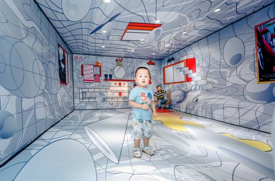 据悉,妙趣屋由小猪短租与图形、插画创作人FELIX_勺子携手设计,内部通过巧妙的视错觉,使人站在特定的位置拍照会产生变大变小的视觉效果,前往体验的影迷们还可扫描屋内的二维码,获取全景拍照打卡攻略以及小猪短租民宿优惠券。