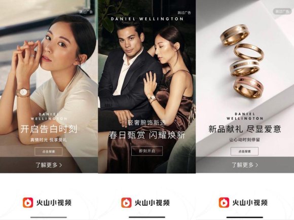 与驻扎一线城市的“隐形贫困人口”相比,新线城市的用户群体释放出愈发强大的购买力,这一特点也被越来越多的品牌所捕捉。轻奢腕表品牌Daniel Wellington丹尼尔惠灵顿(下文简称:DW),在520期间,联合火山小视频围绕DW新品及新品礼盒打出开屏+信息流+达人的组合拳,制造了一起从高效曝光到大面积种草的营销事件,借助火山的新势力叩响了新线市场的大门。