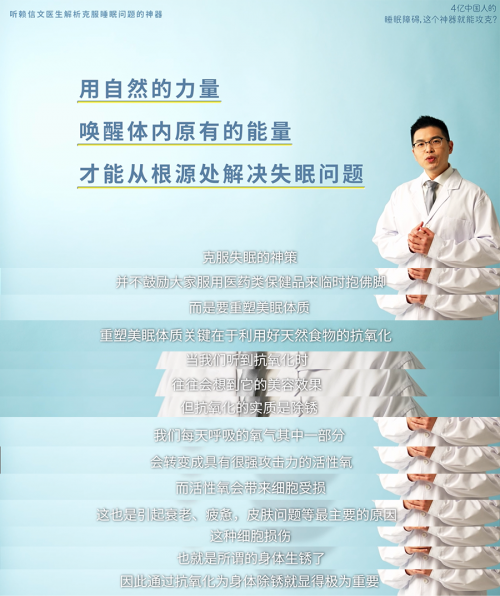 赖医生建议:不鼓励服用医药类保健品,以重塑 "美眠体质"为主,获取良好的睡眠。可利用天然食物的“抗氧化功效”改善体质达到治疗失眠的作用。