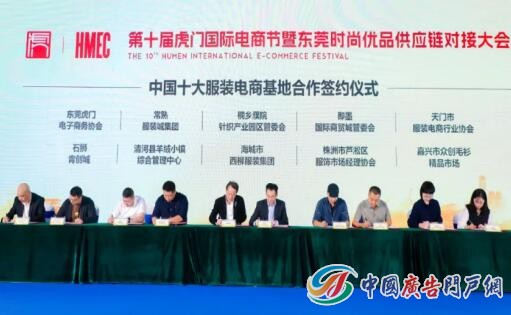 11月28日,在中国纺联流通分会的组织和号召下,“十大服装电商基地”在第十届虎门国际电商开幕式上举行签约仪式,共建全国“十大服装电商基地联盟”,整合产业资源,形成产业合力,共谋产业发展。电商节期间,近百名电商基地联盟服装产业带的负责人将带来各地最新最潮的产业商机,实现资源深入互动、信息共享合作。