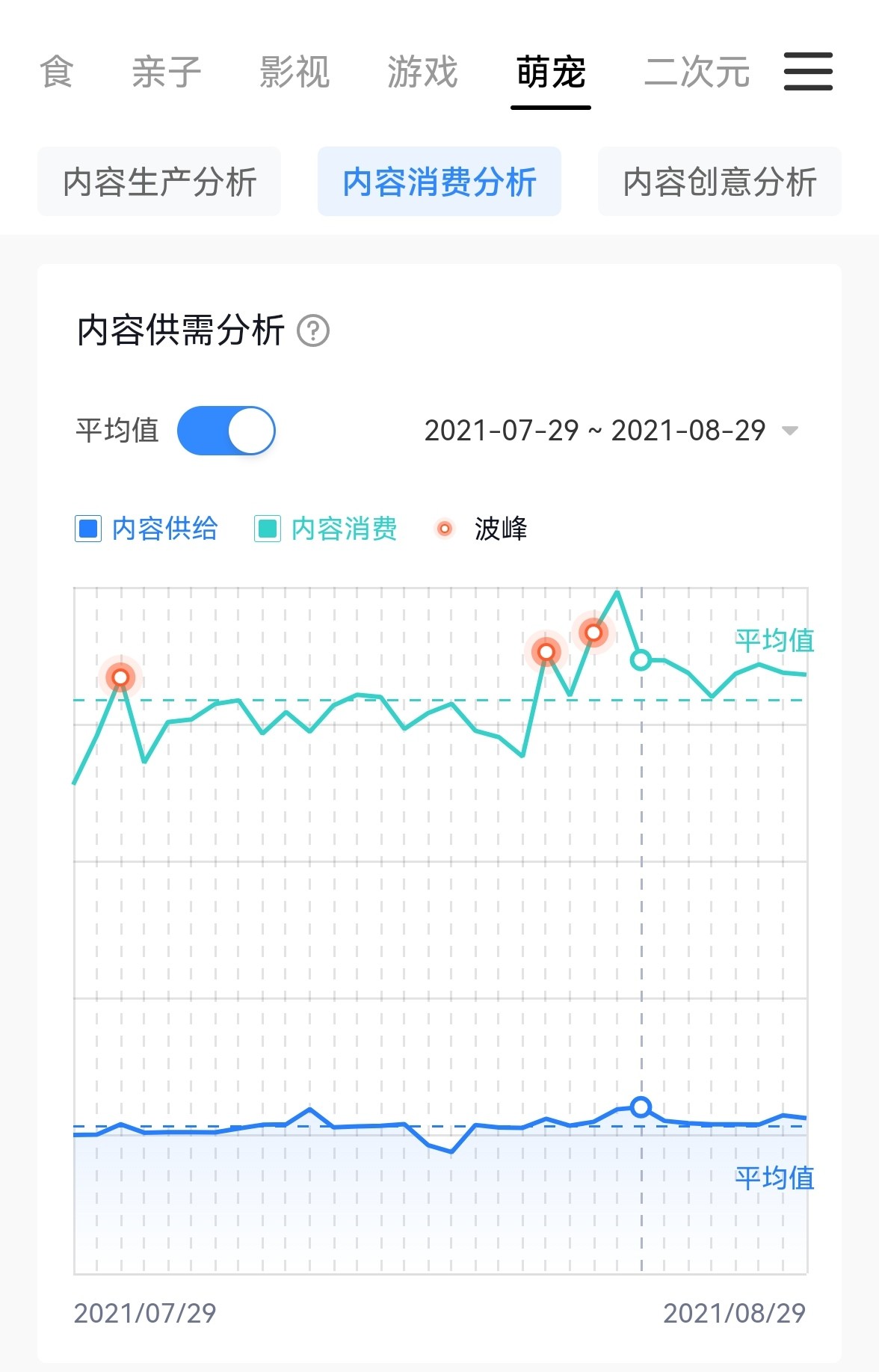 例如,萌宠垂类近半年内容生产量逐步增长,但平均内容生产比为仅为1.20(即每位创作者每天发布1.20条创意视频),内容供给无法满足内容消费。尽管萌宠视频内容生产门槛高、产量低,但内容消费市场需求量大,有较大发展空间,是一个值得进军的“蓝海”赛道。