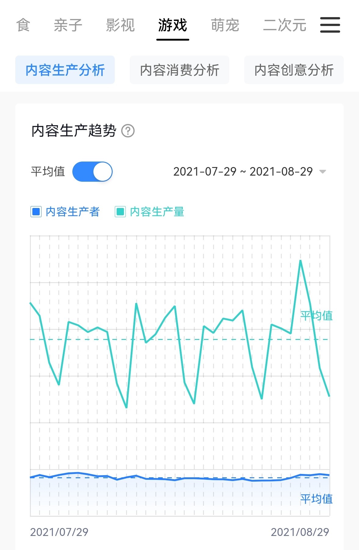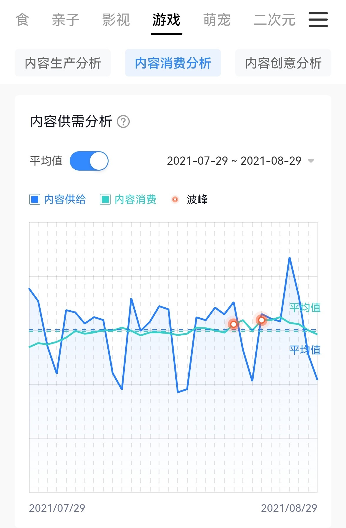 例如,游戏垂类行业在近半年平均内容生产比为6.74(即每位创作者每天发布6.74条创意视频),内容生产量整体趋势稳步增长,内容主要为录屏、双屏操作等展现形式,创作门槛较低、产出量较大。通过内容供需分析,创作者可以发现,该领域的供需关系较为平衡,若想寻求热度上的突破,则需要输出更多优质、个性化内容,以获取用户关注。